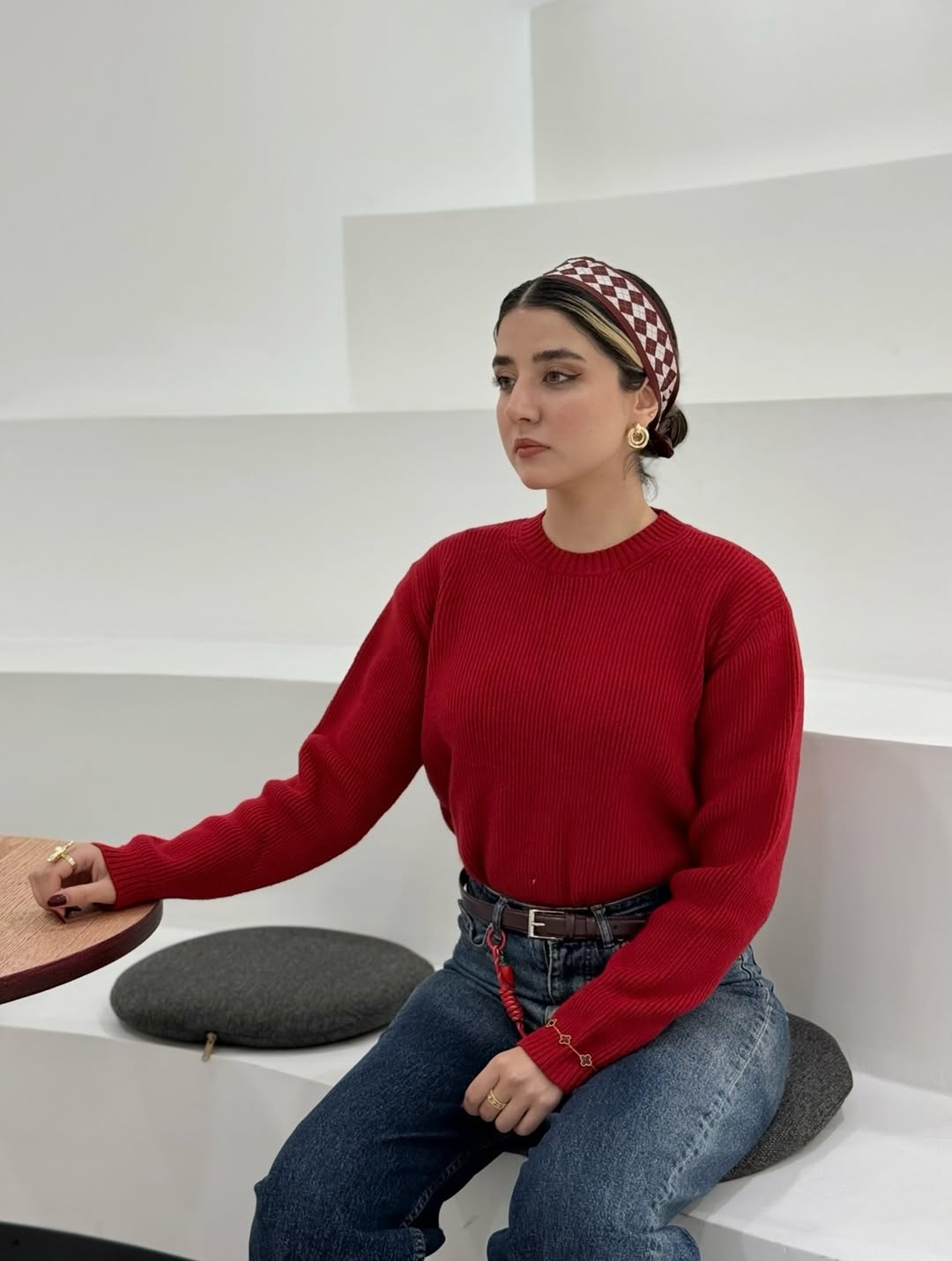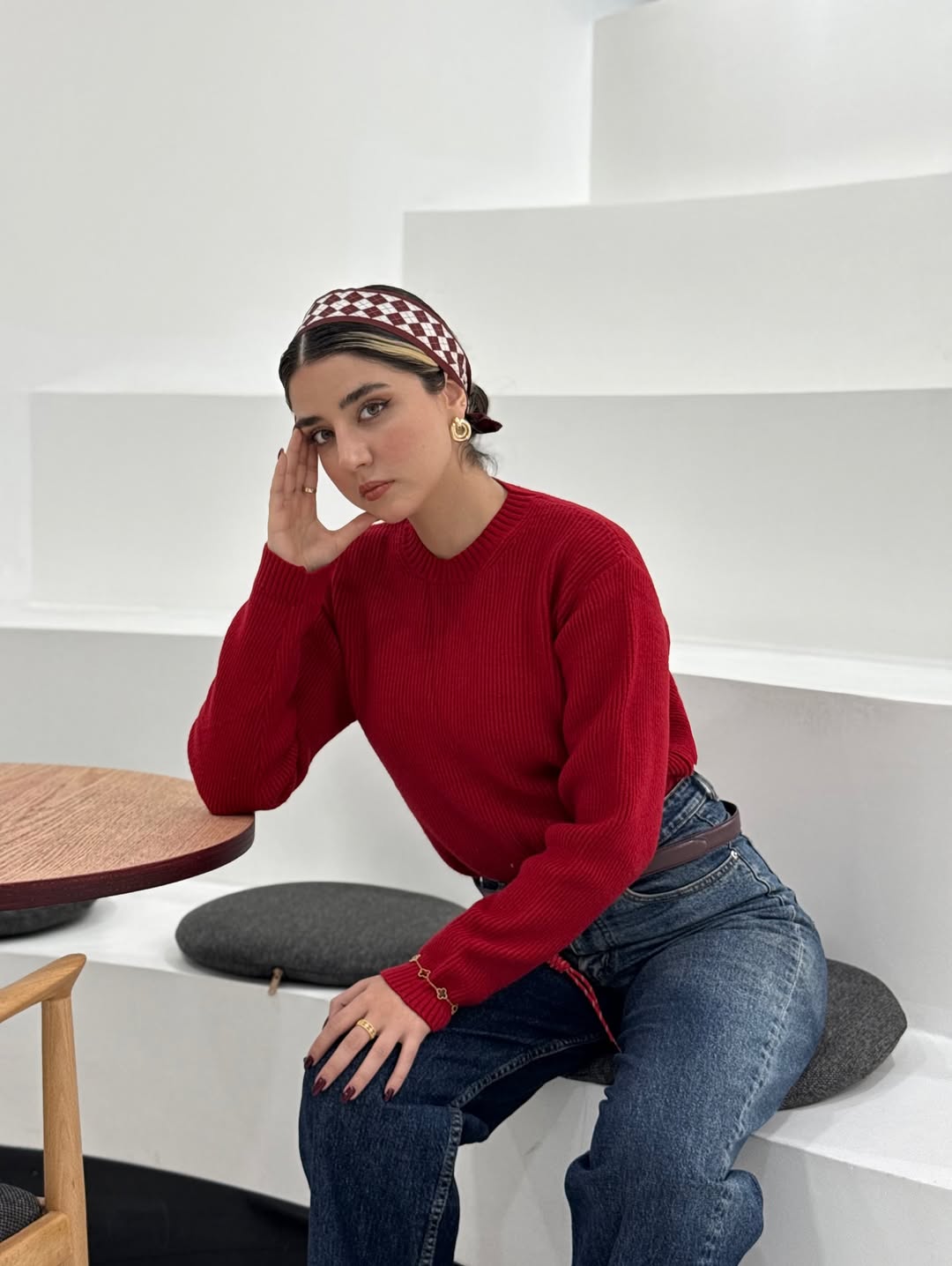 استایل یلدایی ساده و شیک بافت قرمز فریسایز